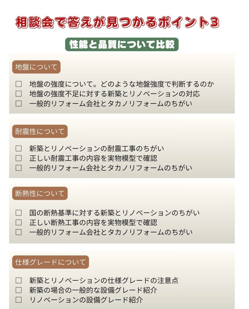 「ご予算の比較」「性能品質の比較」「間取りの比較」