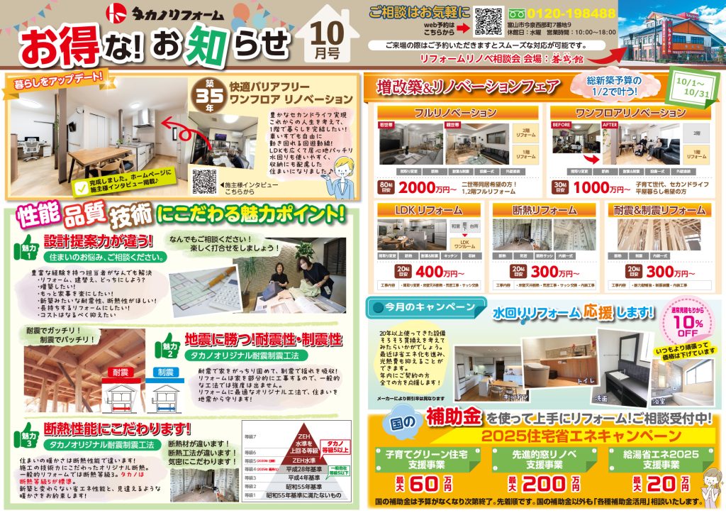 10月のリフォーム情報です。今月もお得な情報満載!