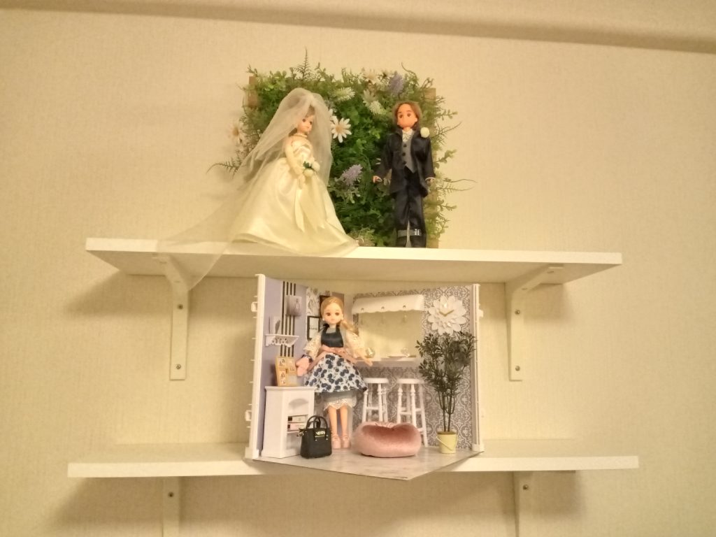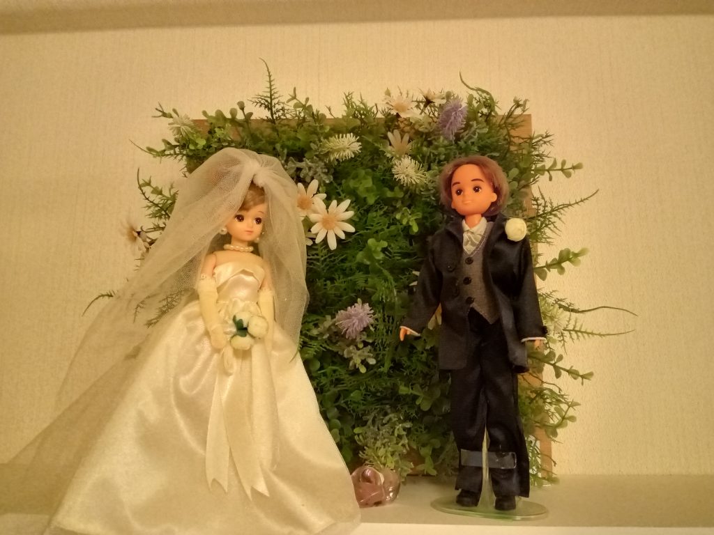 こちらは結婚式のウェルカムボードの代わりに招待客をお迎えしたリカちゃん。