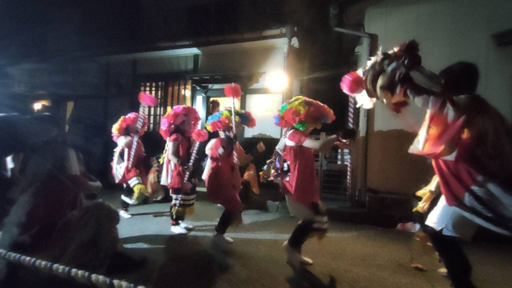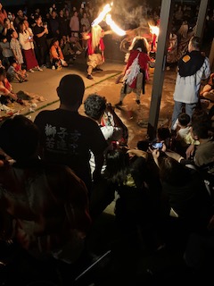 伝統の獅子舞いに賑わう人達は夜8時を過ぎても200人近く集まっていたと思います。