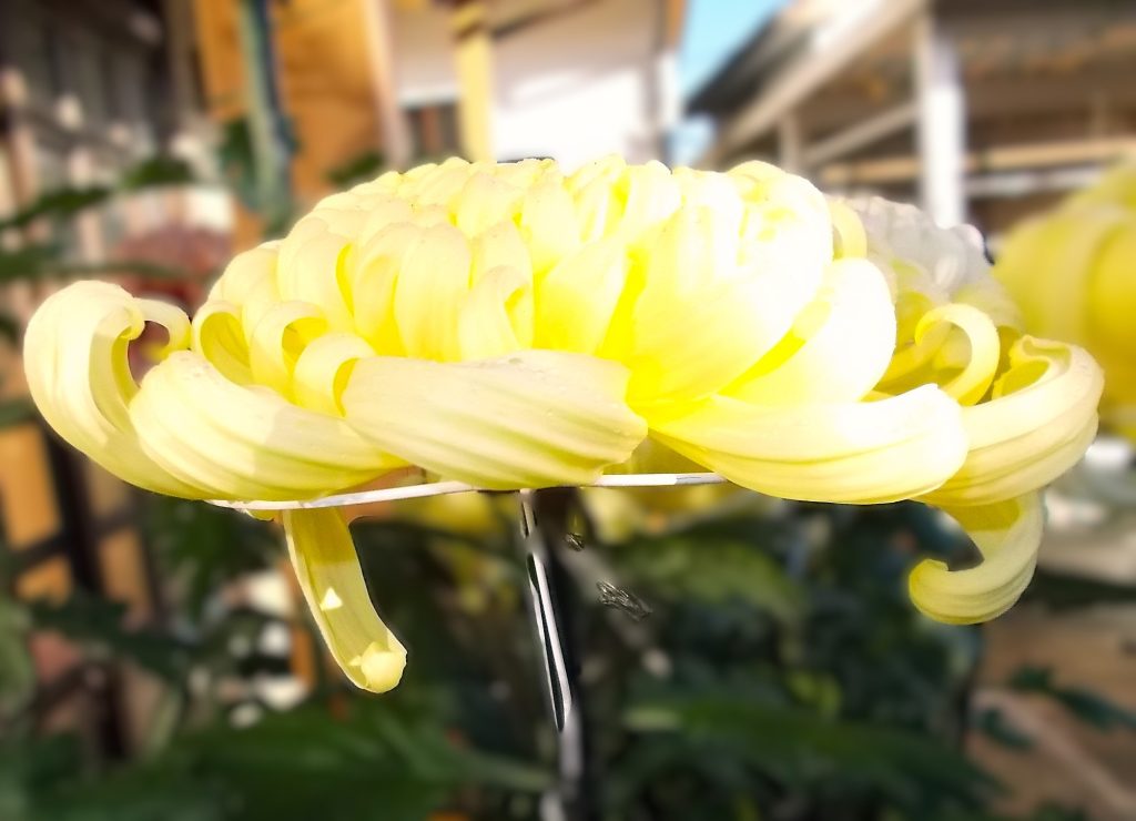 後日再訪したところ、この日は久しぶりに天候もよく、「大菊」達も太陽の光を浴び、綺麗に咲き誇って見えました。