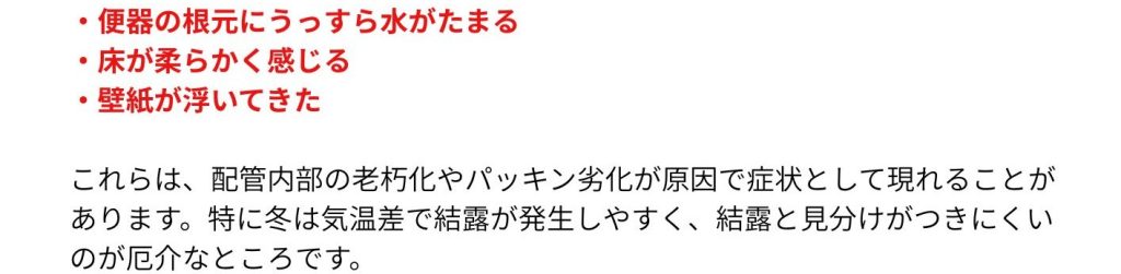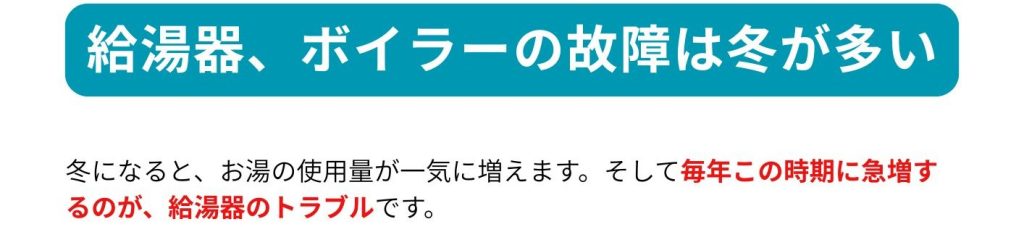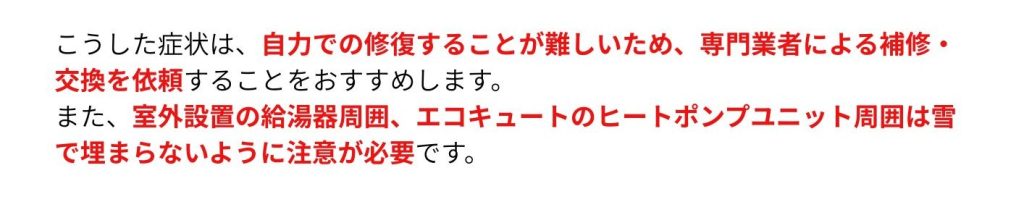 冬は住まいのトラブルの多い季節です。住宅設備や暖房器具、給湯器などの設備は寒さで負荷も多くなり、雪の影響により家の外部も傷みやすくなります。