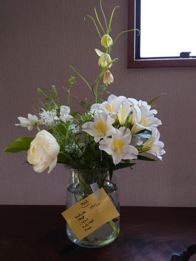 ブーケなので、活けていると、なんか穏やかな気分になってきます。